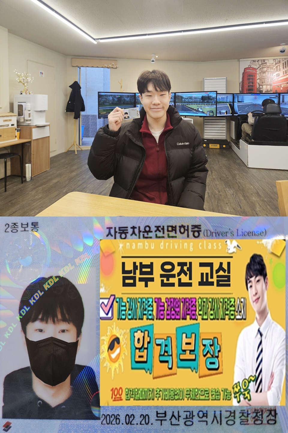 처음 왔을 때부터 저랑 장난도 많이 치고 웃으면서 연습하던 모습이 아직도 생생해요. 분위기는 늘 유쾌했지만, 막상 운전대 잡으면 또 집중해서 끝까지 해내던 모습이 참 인상 깊었습니다. 연습 중에 몇 번 불합격이 떠도 전혀 흔들리지 않고, 피드백을 바로 적용해서 결국 기능이랑 도로주행을 모두 한 번에 합격해낸 건 정말 대단한 일이에요.