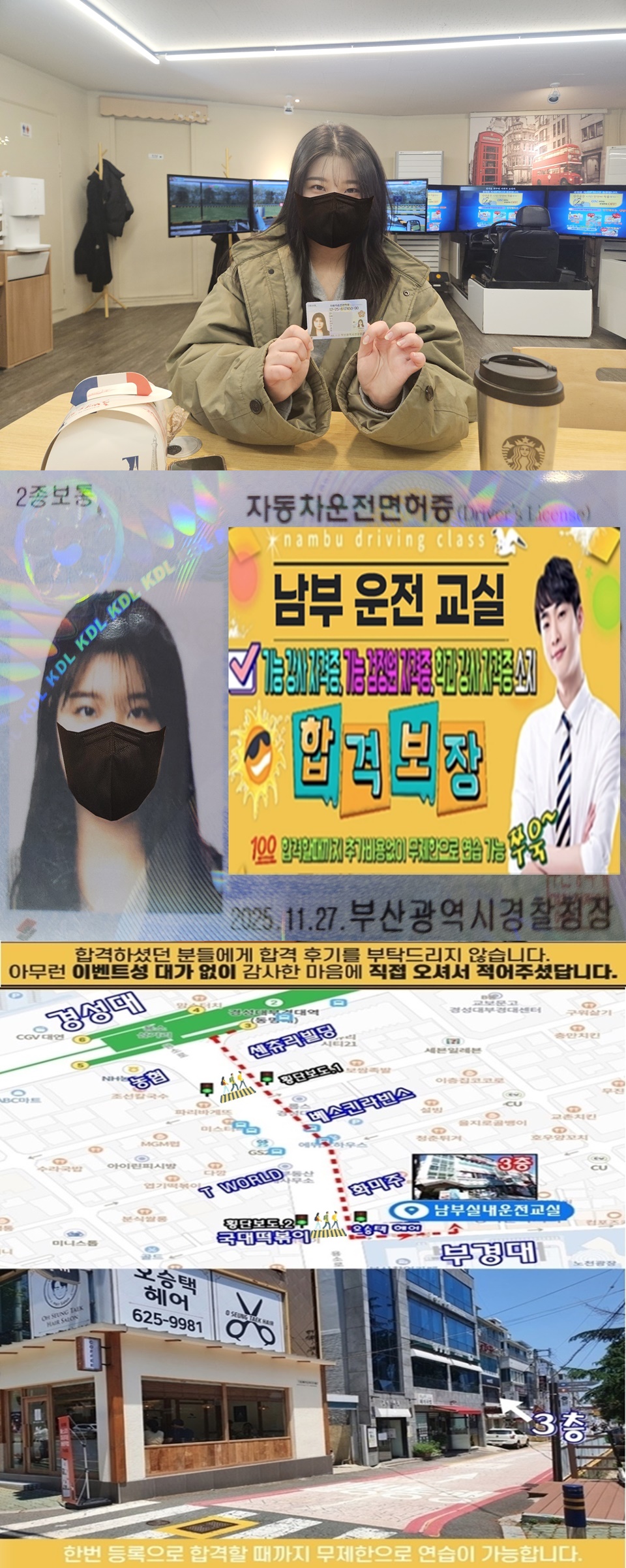 전문 학원의 금액 부담과 두려움 속에서도 용기 내어 저희 남부 운전교실을 선택해주신 것만으로도 감사한데, 아르바이트를 두 개나 하시면서 시간을 쪼개 도전하신 과정은 정말 쉽지 않은 선택이었을 거라 생각합니다.
