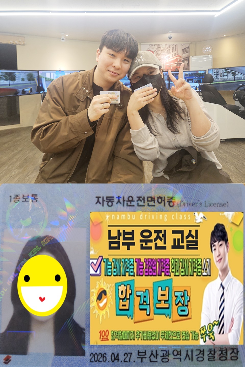 두 분이 함께 등록해서 서로 응원하고 도와가며 준비하시던 모습이 참 보기 좋았고, 그 시간들이 저에게도 따뜻한 기억으로 남아 있습니다. 기능시험부터 도로주행까지 모두 잘 해내시고, 서로 챙겨주며 함께 합격까지 이어진 모습이 정말 인상 깊었습니다.