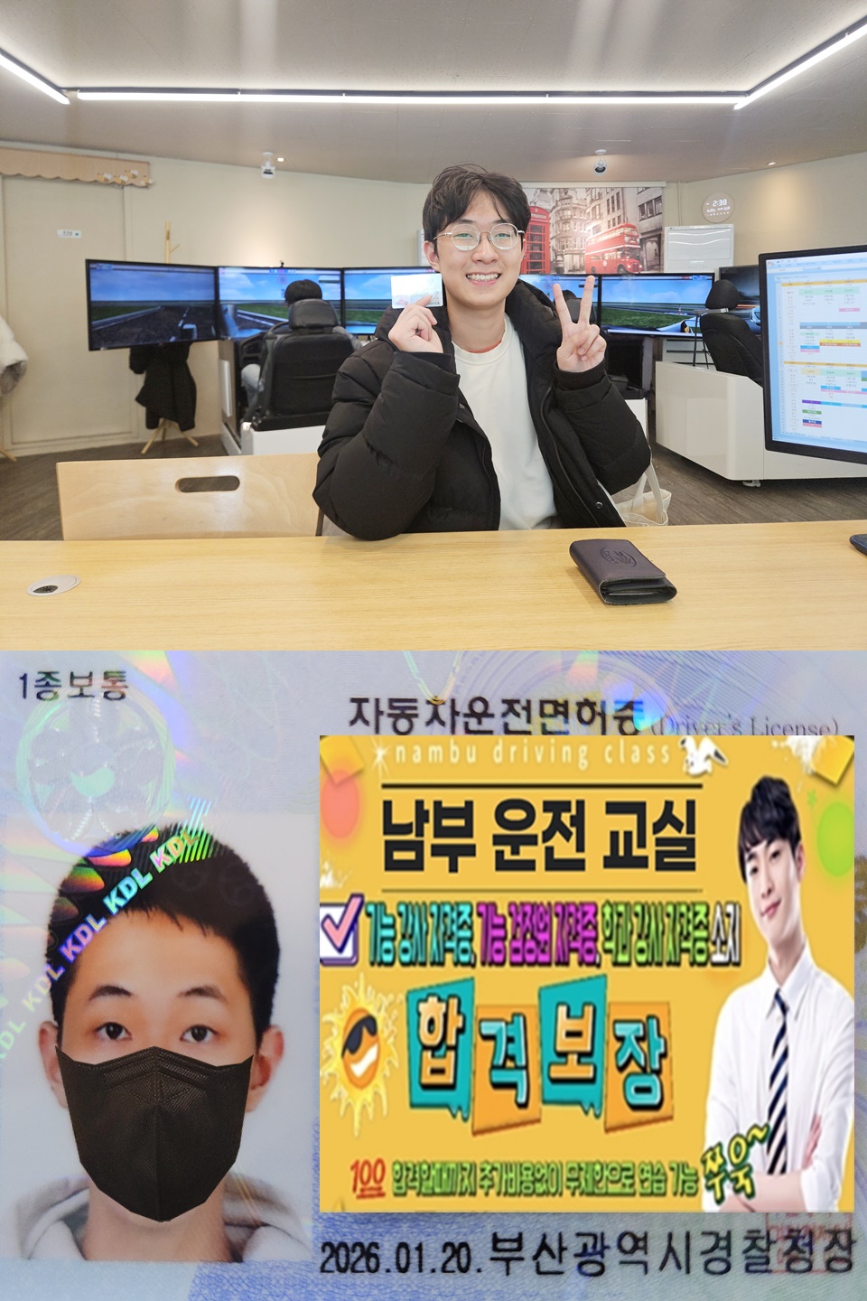 아버님 추천으로 믿고 찾아와 주셨는데, 이렇게 짧은 기간 안에 기능이랑 도로주행까지 모두 합격하셔서 정말 기뻤습니다.