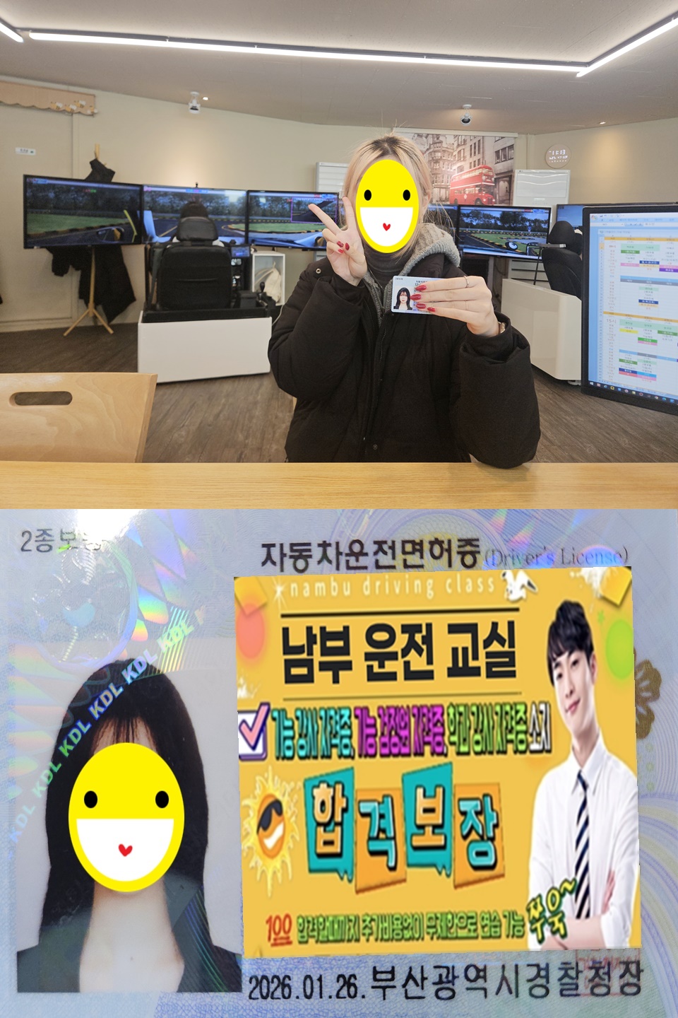 친오빠분이 먼저 여기서 면허를 취득하시고 추천해줘서 오셨는데, 친구분과 함께 웃으면서 재미있게 연습하던 모습이 아직도 기억에 남네요. 장내기능 때 각도나 포인트도 금방 이해하시고, 도로주행도 주의사항 잘 지켜서 수월하게 합격하셨던 것 같아요.