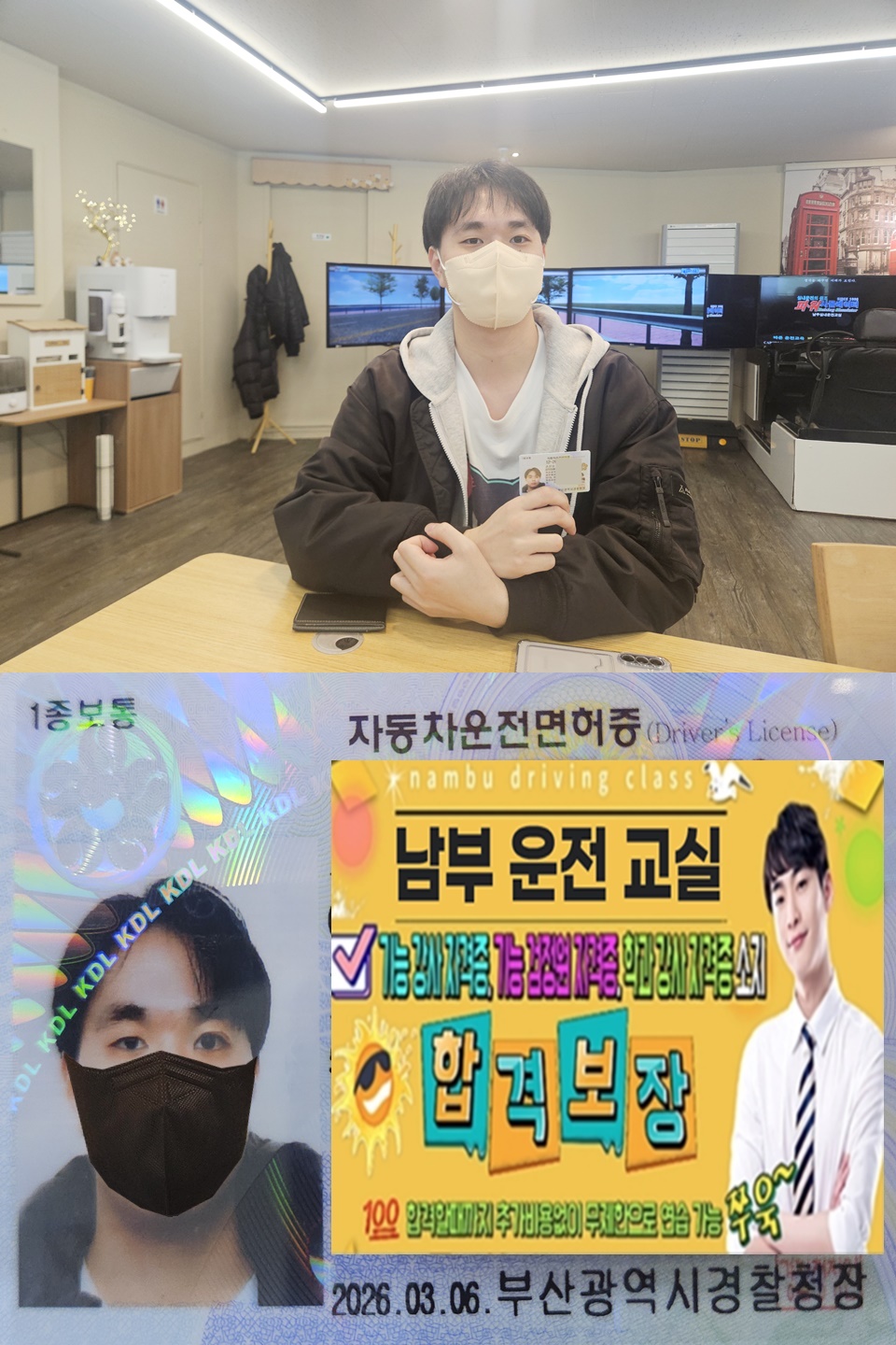 2월 3일에 저희 남부운전교실에서 1종 자동면허를 취득하시고, 군대 준비로 다시 방문해 1종 수동 연습을 하셨던 게 기억에 남습니다. 짧은 기간이었지만 집중해서 연습하신 덕분에 이틀 만에 시험에 합격하신 모습 보며 저도 정말 기뻤습니다.