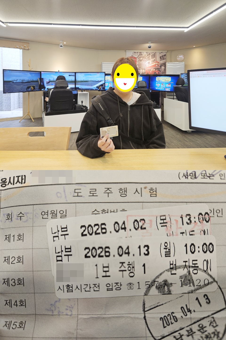 처음에 왔을 때 진짜 차로 하는 게 아니라서 걱정을 많이 했었는데, 막상 시험 치러 들어가니까 생각보다 비슷하고 선생님이 가르쳐 준 것들이 많이 도움이 되어서 어렵지 않게 합격할 수 있었던 거 같습니다. 가르쳐주실 때도 친절하셔서 좋았어요.